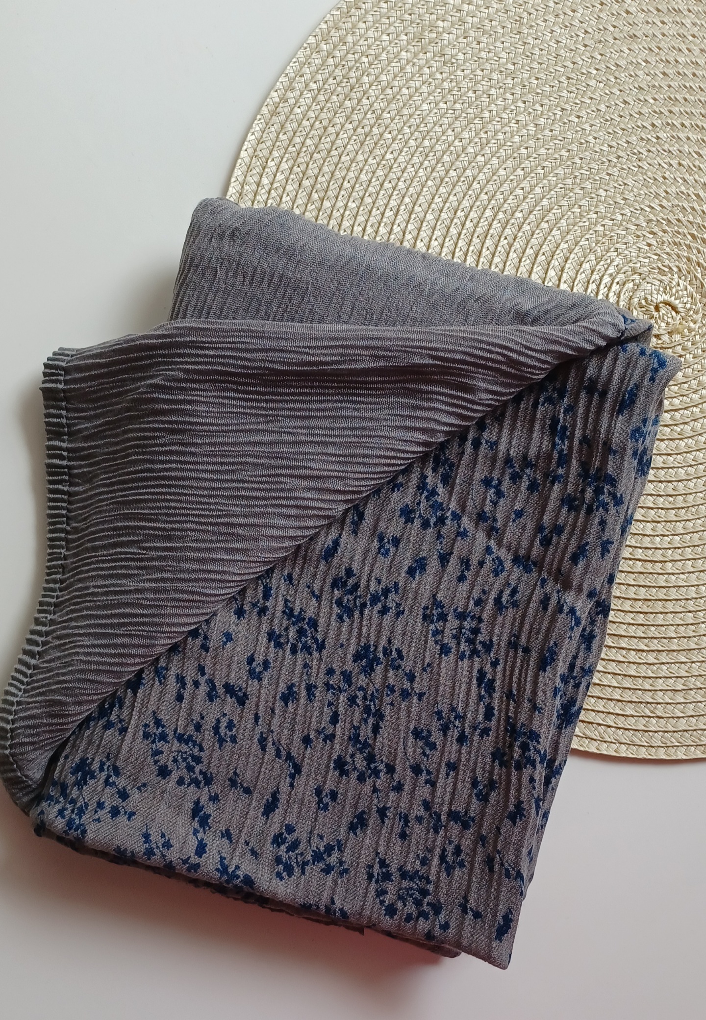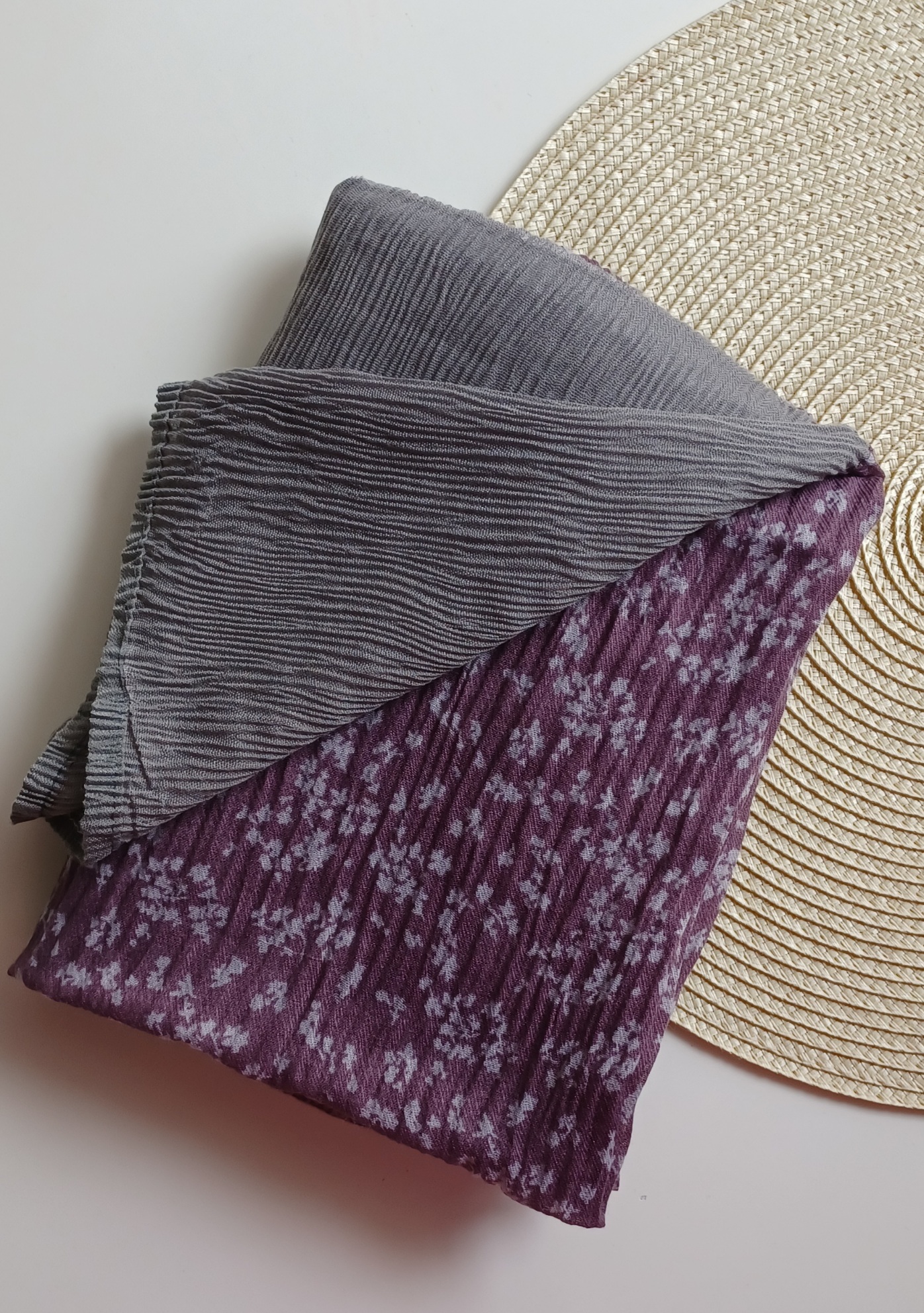 شال زنانه مدل پلیسه طرح گل دار دستک ساده